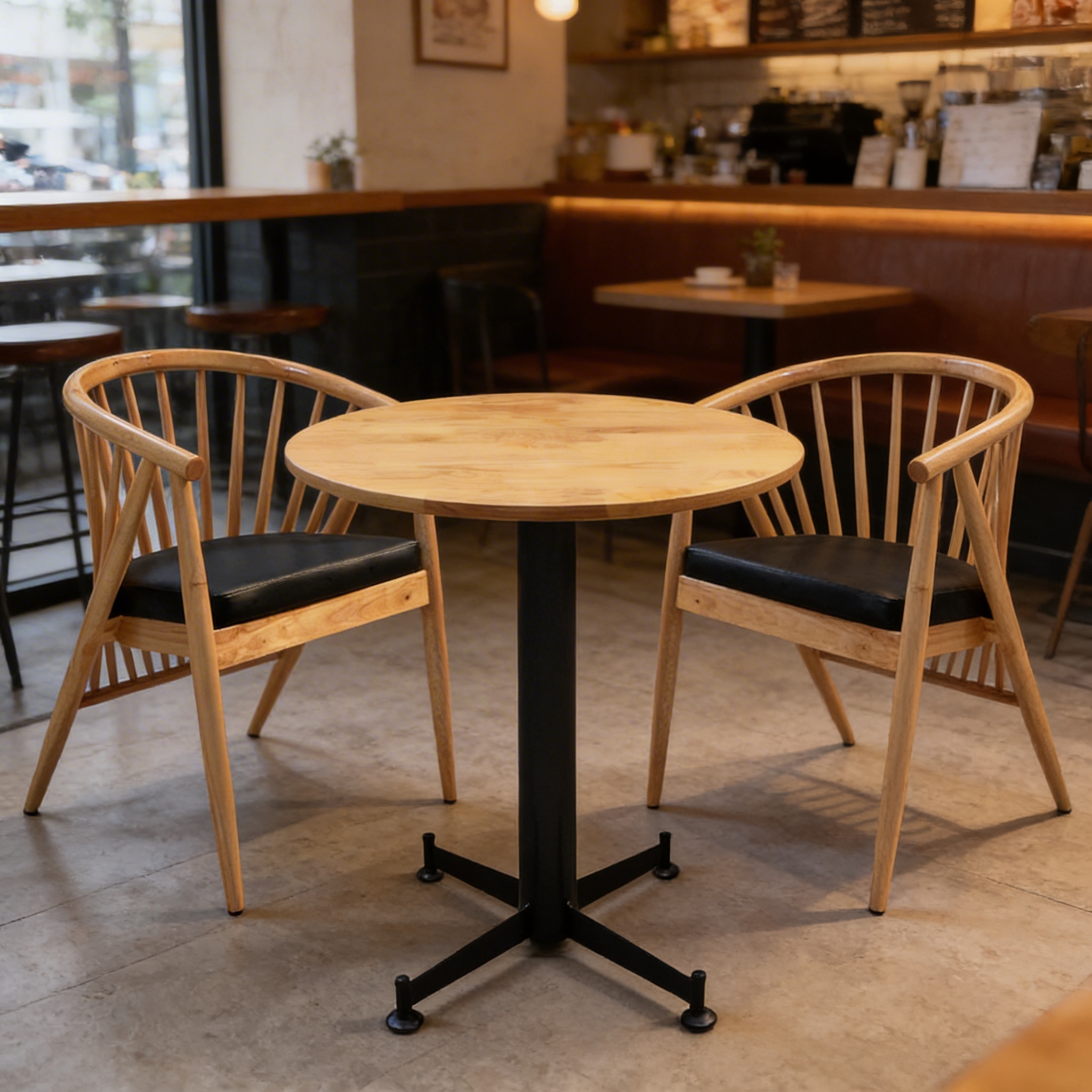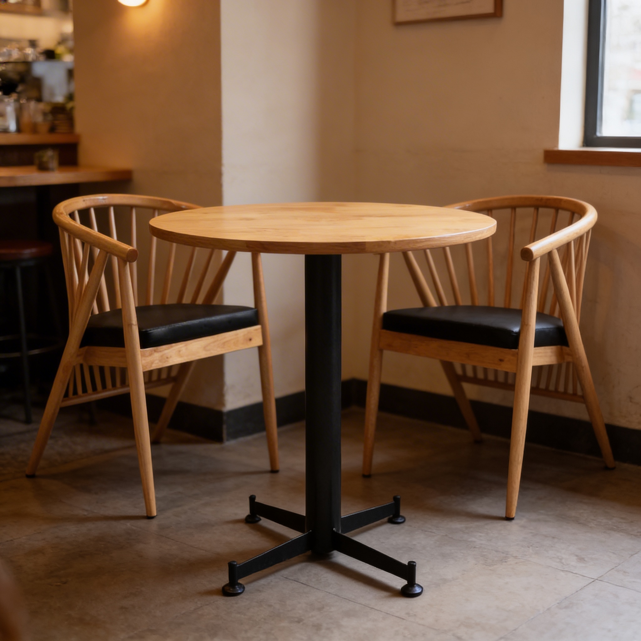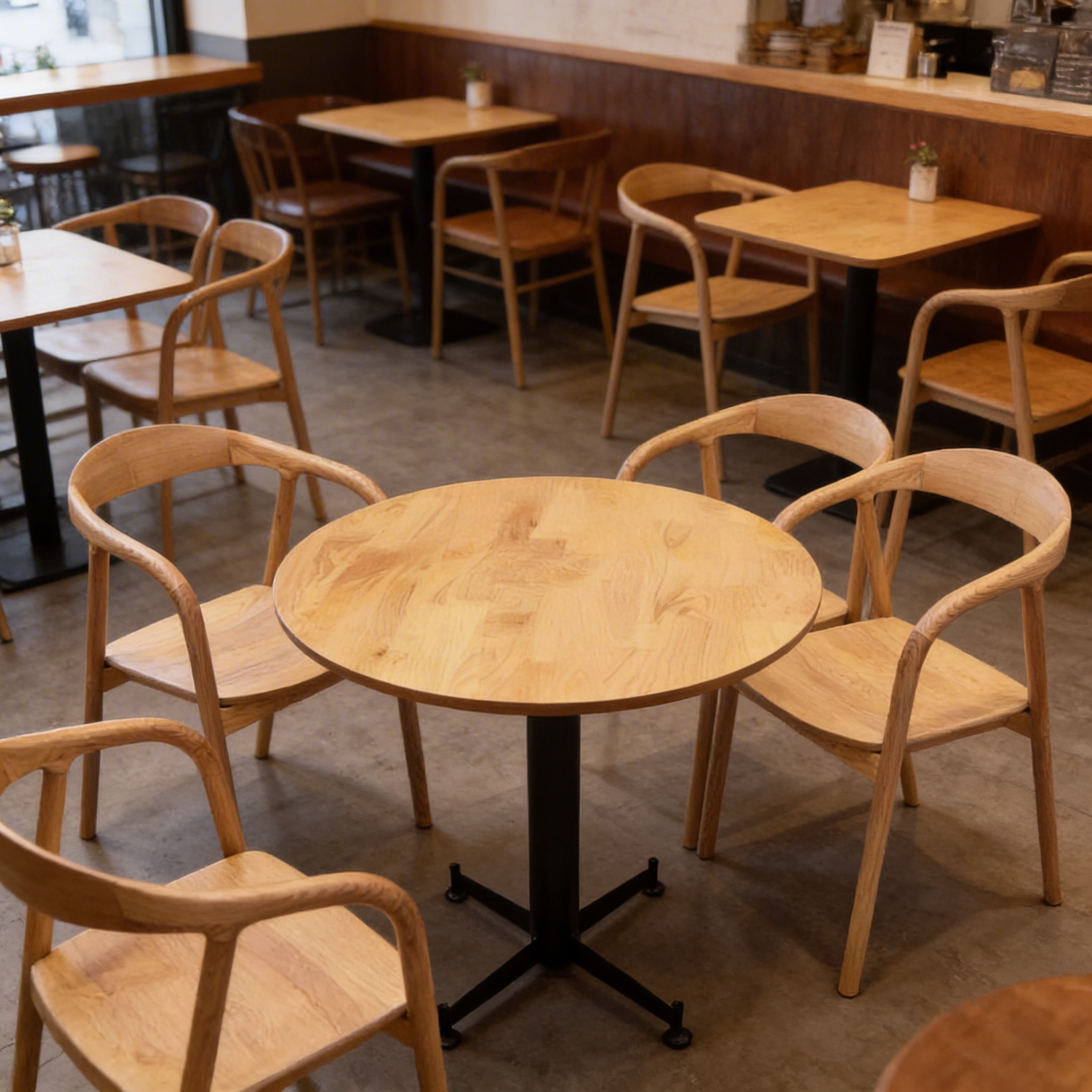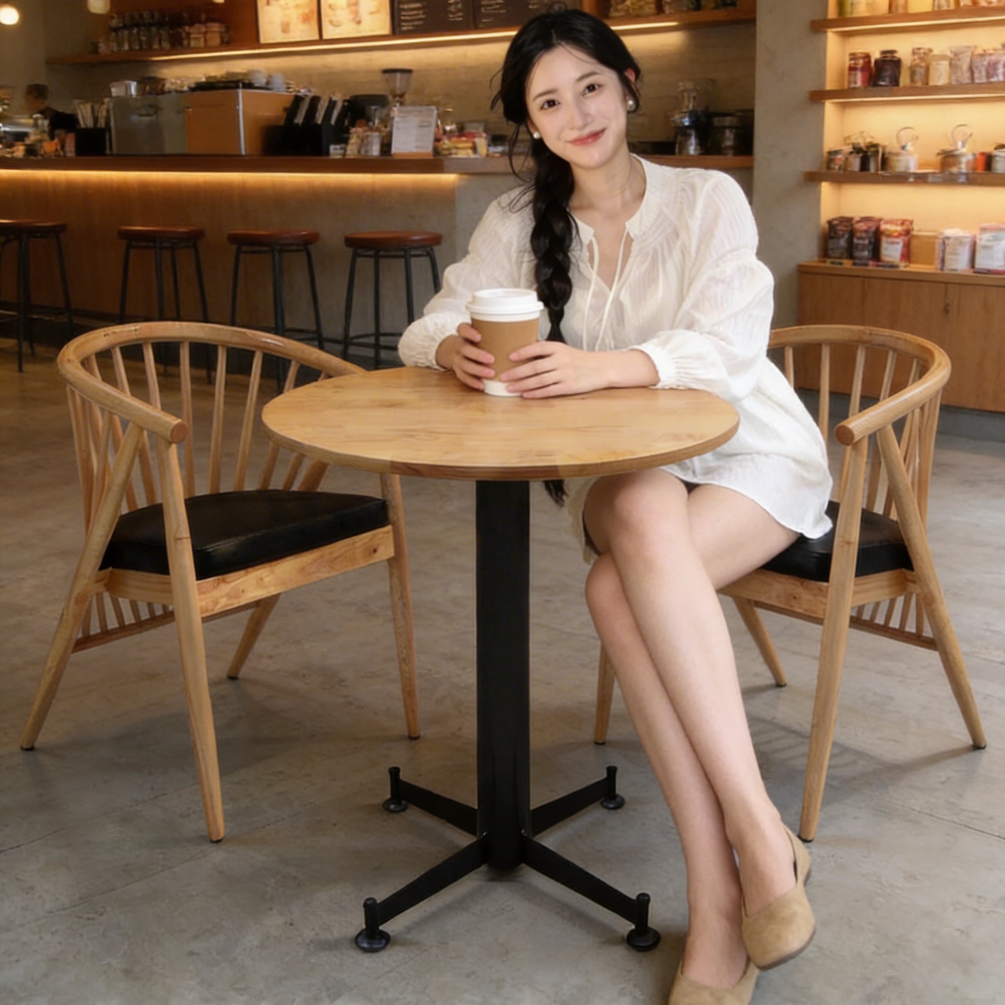 - Mặt bàn: làm từ gỗ cao su tự nhiên, kích thước đường kính bàn tròn 60 cm, bề mặt xử lý mịn, vân gỗ đẹp, màu sắc ấm áp.