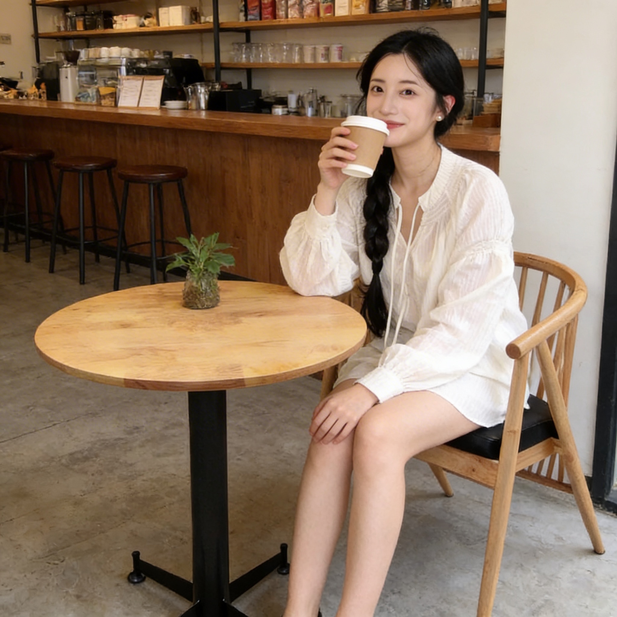 Bàn có thiết kế đơn giản, hiện đại, phù hợp nhiều không gian như quán cà phê, văn phòng hoặc góc làm việc tại nhà.
