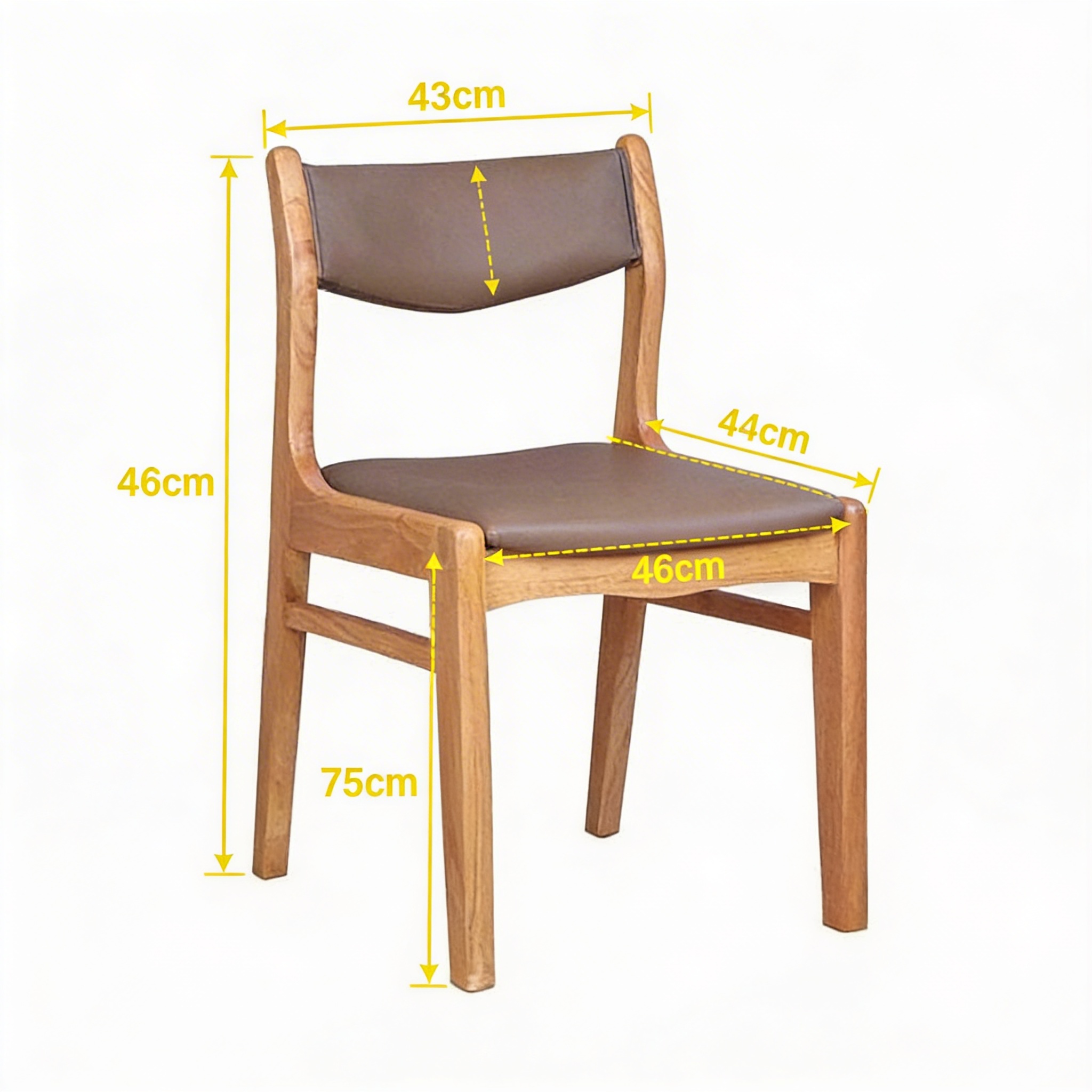 - Kích thước hợp lý: chiều cao tổng thể khoảng 75cm, chiều cao mặt ngồi 46cm, phù hợp với đa số bàn cafe tiêu chuẩn.